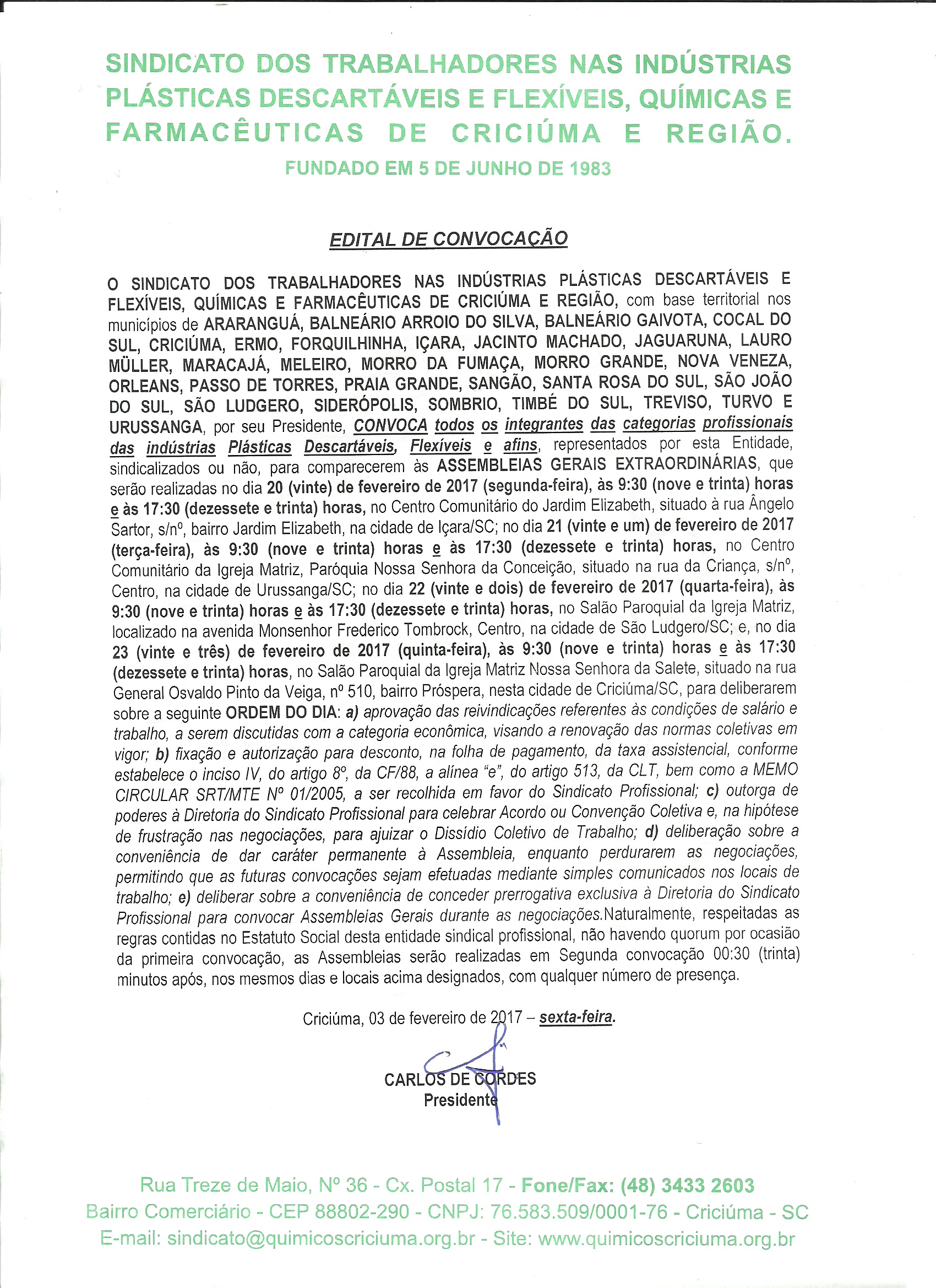 Edital de Convocação da Categoria Plástica para discussão do Rol de Reivindicação Data Base Abril