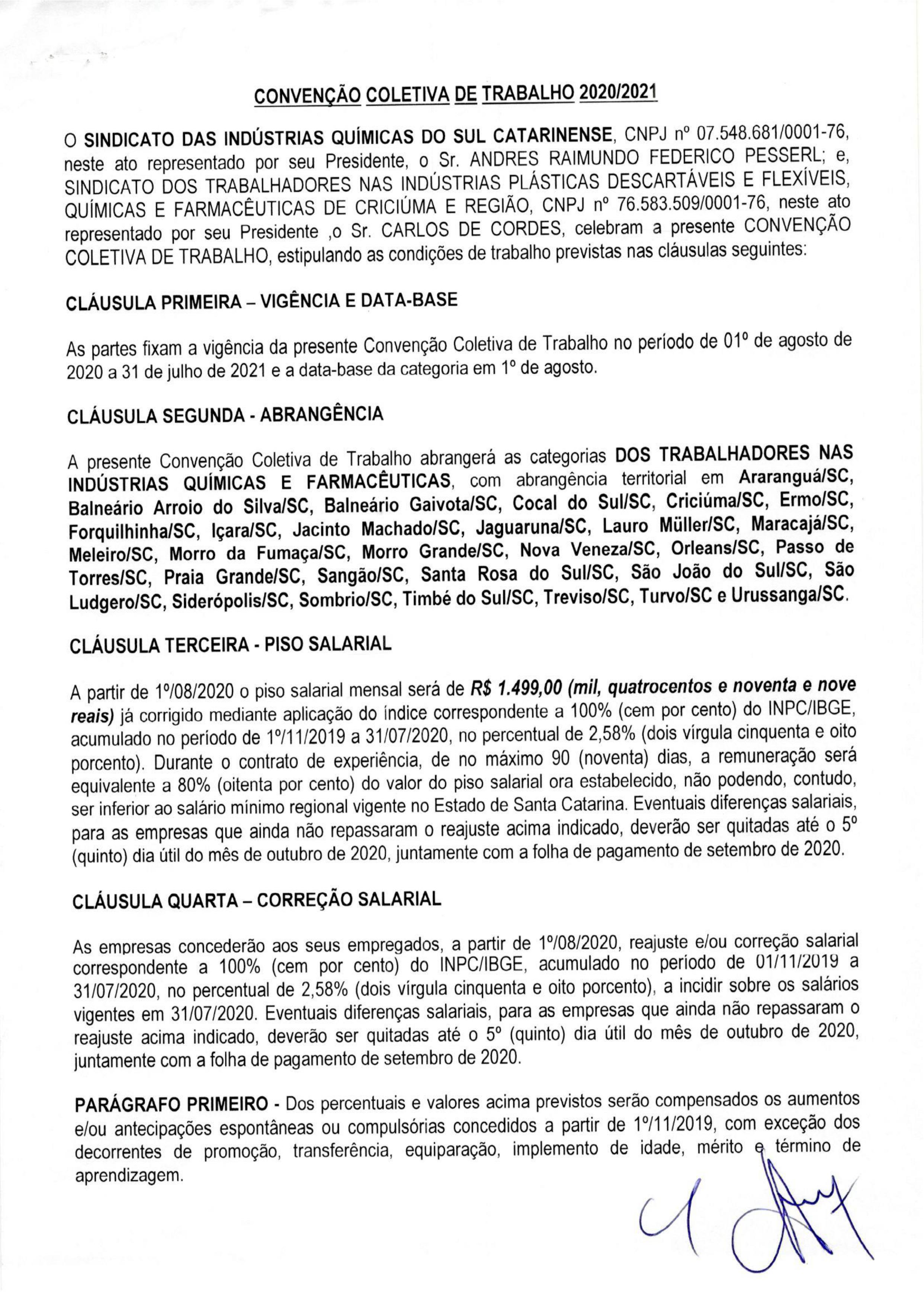 Convencao Coletiva de Trabalho das Industrias Quimicas e Farmaceuticas dos Anos 2020/2021